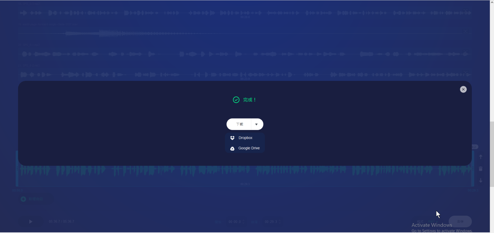 6。處理完畢即跳出下載畫面,也可上傳至 Google Drive 或是 DropBox。