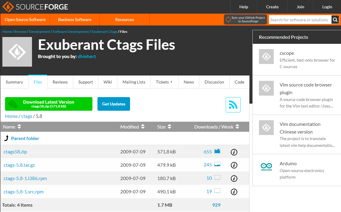 CTags 也算是一個古老的工具,最新的一版是 v5.8,2009/07/09放出來的。
