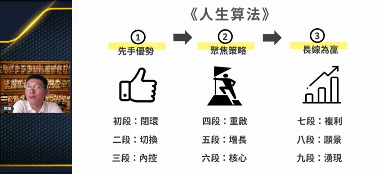 也就是說把自己當成一支股票,有紀律地投資他,每天成長0.01也是很可靠的定存股。時間會按照你投入的值與量,來決定你該擁有的收穫。如果三天捕魚、兩天曬網,那你不過是一支波動性大的股,還可能是虛晃自己的「概念股」。要是你穩打根基、立定志向(願景),即使不是每天拿0.1,至少也是成長股。