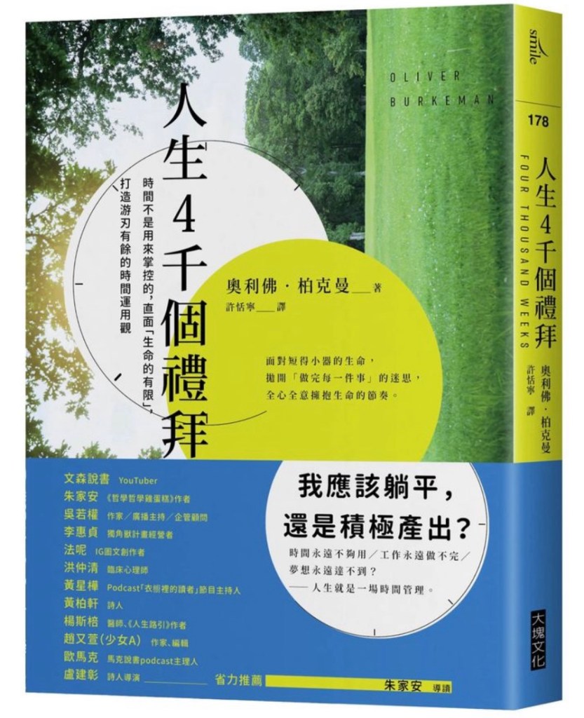 透過《人生四千個禮拜》,我們再重頭認識什麼是時間。時間只是一個概念,但在人類歷史上,以工業時代為界線卻畫出了截然不同的生活樣貌。以前的人看日光氣象來生活,現在的我們是依照鐘錶一板一眼的來行動。