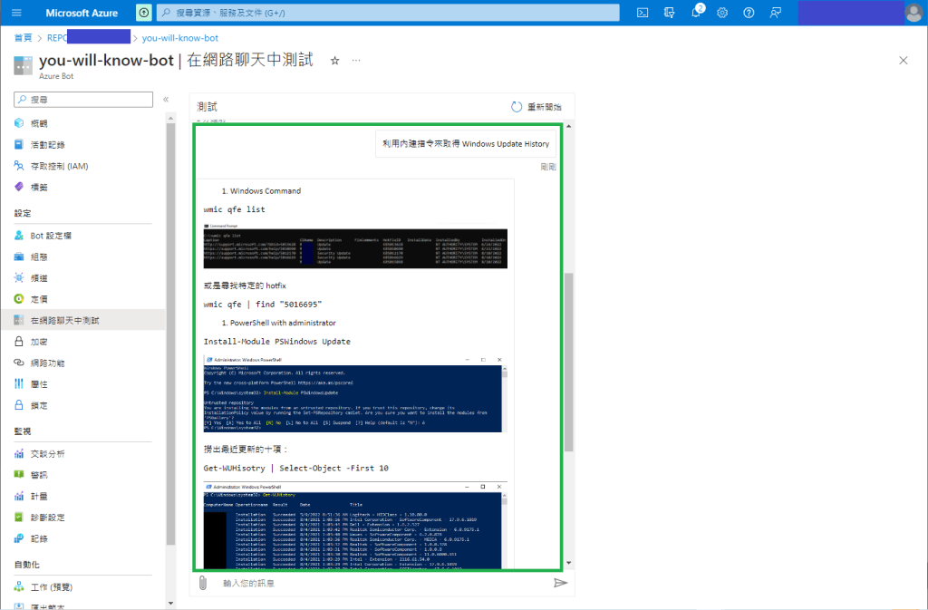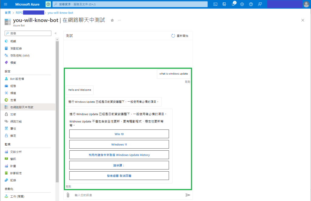 11. 回到你的 Azure “資源群組" 找到建立的機器人