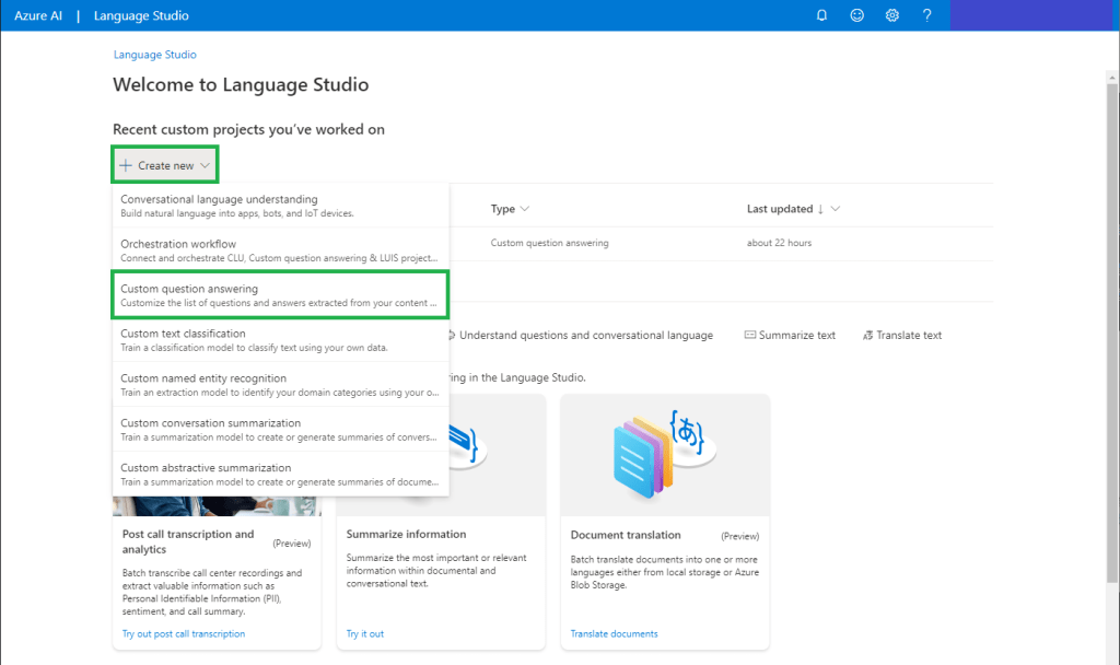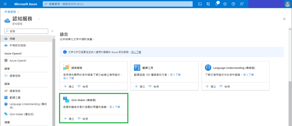 - 就從 “認知服務" > “語言服務" > “問題解答" 著手吧!