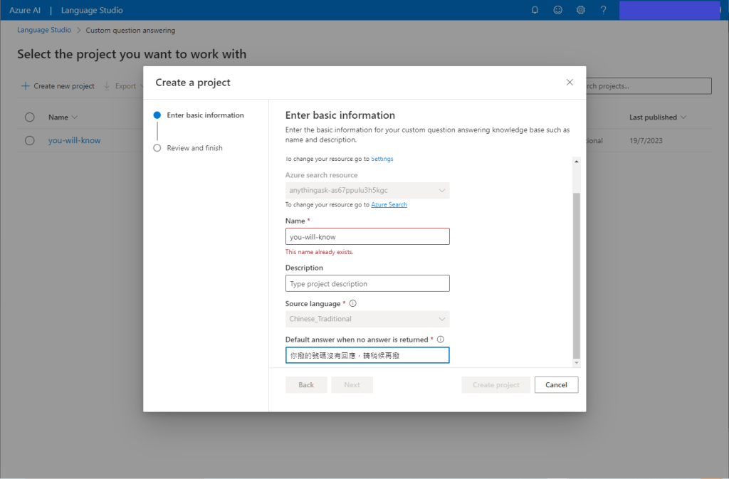 - 利用 Azure 來做問答機器 (3) – 啟用 “語言資源" 並取得 “管理金鑰"